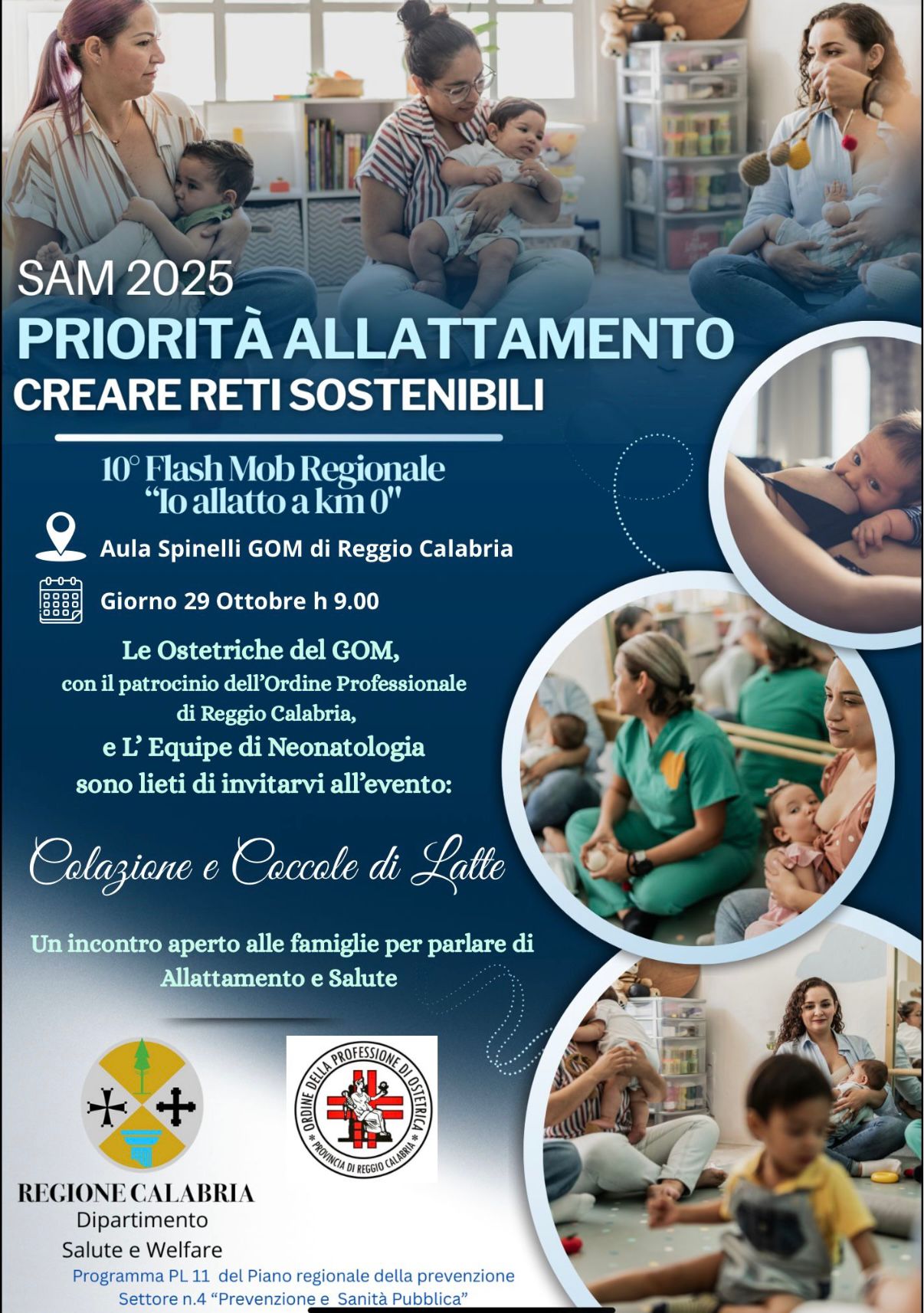 In occasione del 10° Flash Mob regionale “Io allatto a km 0”, anche le ostetriche del G.O.M. di Reggio Calabria aderiscono con entusiasmo e si impegnano a sostenere con professionalità e affetto ogni neomamma nel suo percorso.